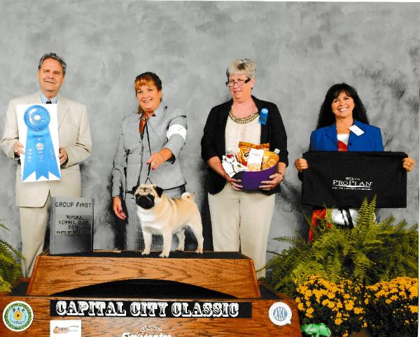 | Pug CH CAREVA'S BOODELICIOUS Owner: Mary Henricks Patt Kolesar Stoltz & Rick Stoltz Judge: Christopher Neilson |