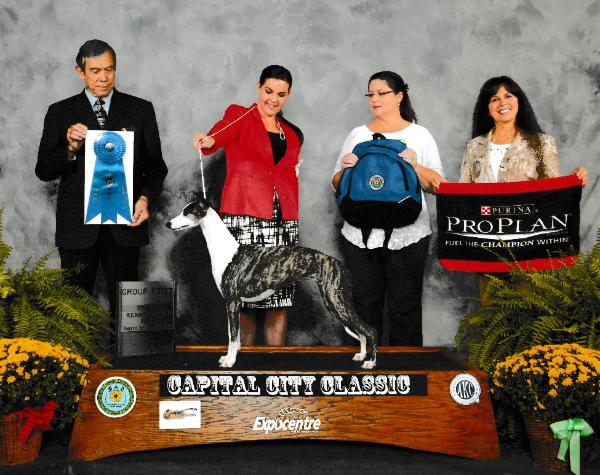 | Whippet GCH CH SPORTING FIELDS SHAMELESS Owner: Barbara Call &J CooneyWaterhouse &D Butt & A Giles Judge: Mr Alberto Berrios |