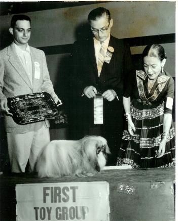 | Best In Show Toy Group 1 Pekingese Ch. Chik T'Sun of Caversham Owner: Mr and Mrs CC Venable Handler: Clara Alford Judge: Maxwell Riddle Presenter: |